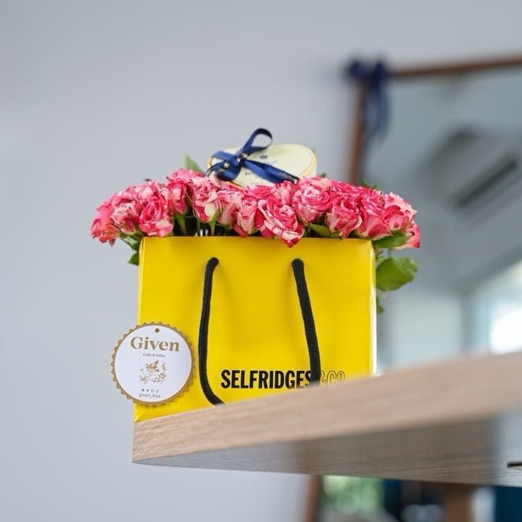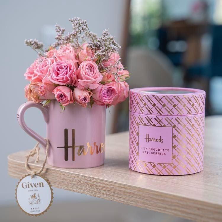 تجربة راقية تجمع بين القهوة المختصة و بوكيهات الورد وتغليف الهدايا الراقية من هارودز لندن